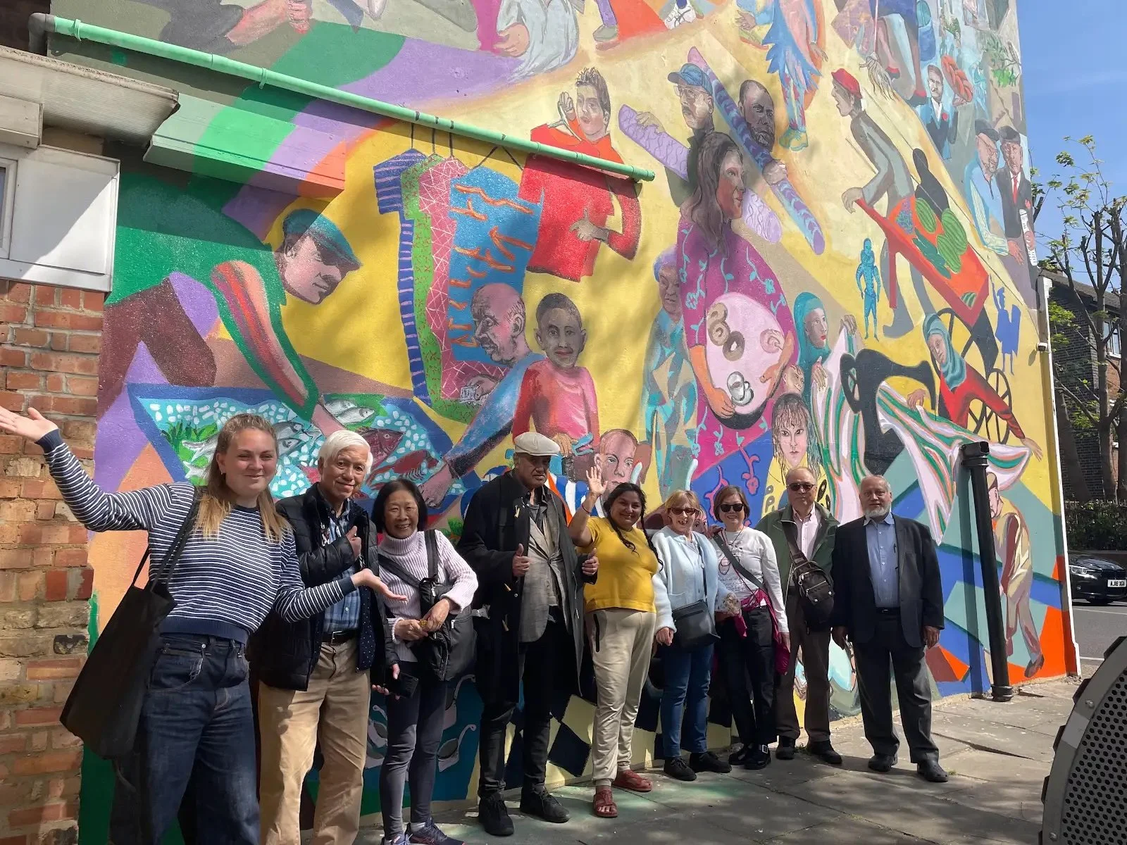 It was lovely to see our friends at Sonali Gardens again when they visited the mural recently. This group – comprising a mix of coffee morning and ESOL group members – came together with youngsters from St Mary & St Michael RC School earlier this year to contribute ideas to the mural design. Thanks to Amber Newlands at InCommon and Julie Begum at Sonali Gardens for making this possible, and for bringing the group along to see the end result.