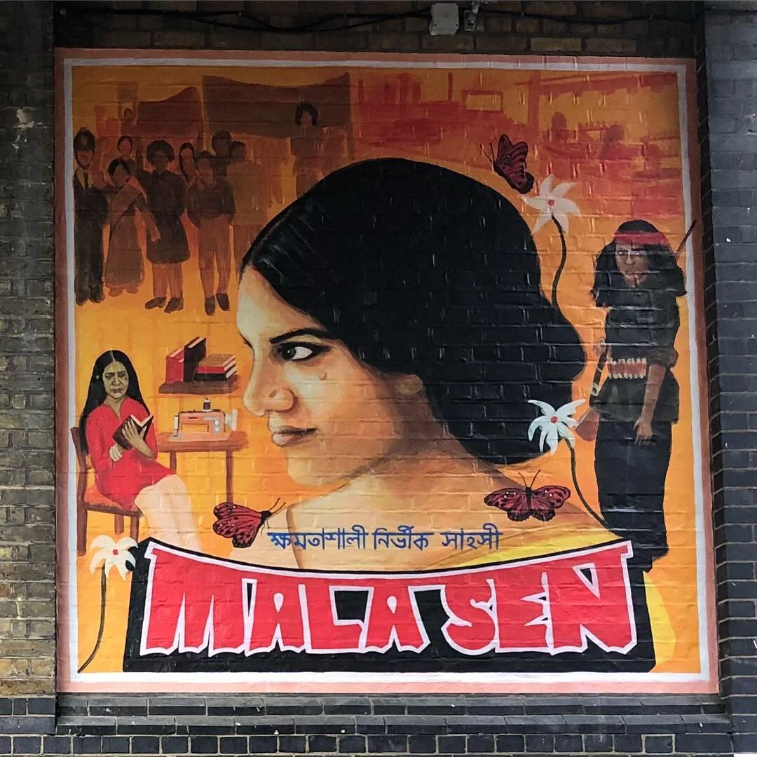 The Bengali words for powerful, fearless and courageous were featured on this Brick Lane mural of Mala Sen by Jasmin Sehra.