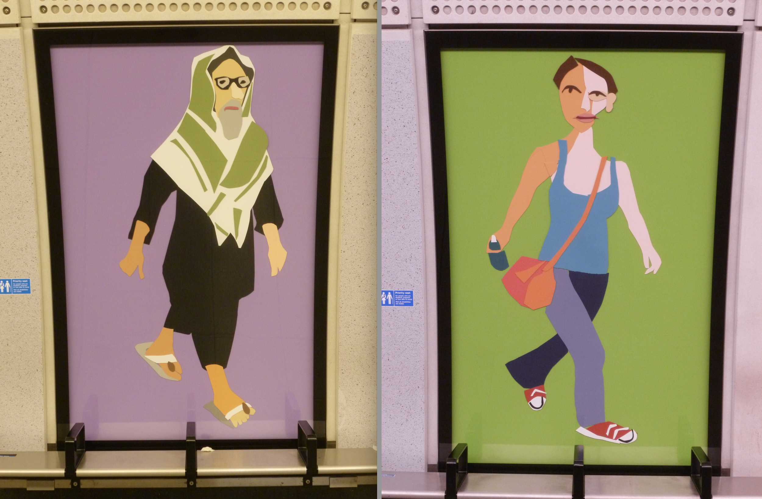 A Sunday Afternoon in Whitechapel: collage figures on the Elizabeth line platforms by Chantal Joffe
