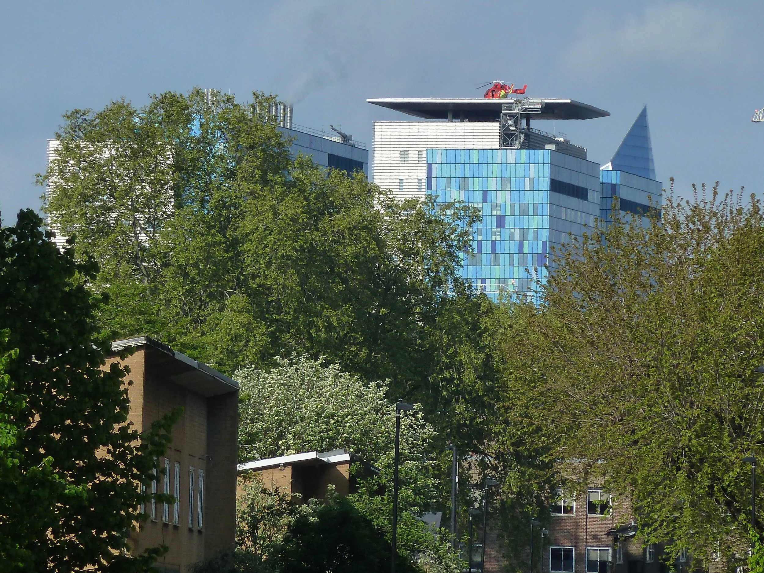 The modern-day Royal London Hospital rises on the Whitechapel skyline